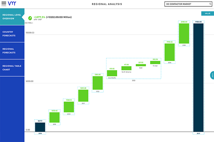 The country forecast graph shows the comprehensive analysis on country level market. It also illustrates the market in terms of value generated from sales for the particular year. The drop down permits the year from 2018 to 2027 to compare the values of the countries. The country level forecast dashboard also allows comparing the data between major contributing countries and least participant countries for the each year. This will help client to create strategies to make the most of upcoming growth opportunities globally. Country level growth can accountable for both historical as well as projected market summary, since the development and future opportunities will create market competitors to take their decision according to the previous year’s market evolution. The country forecast data and CAGR will help to understand countries GDP, growing population, growth strategies of each country, and future growth potential on country level. This will help key vendors to identify sustainable growth opportunities in new market.